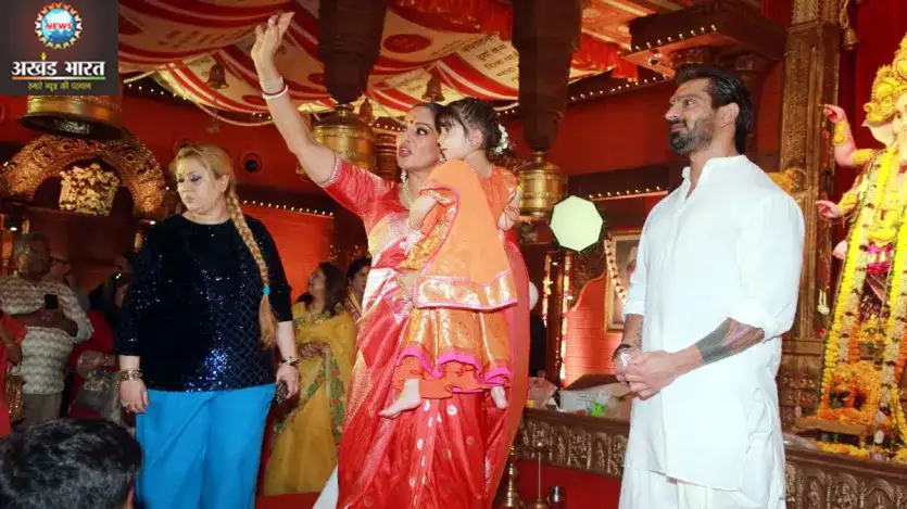 मुंबई (एजेंसी) (AkhandBharatHNKP.Com)। दुर्गा पूजा के अवसर पर बॉलीवुड में भी इस पर्व की धूम रही। मुखर्जी परिवार ने हर साल की तरह इस बार भी खास आयोजन किया, जिसमें फिल्मी सितारों ने शिरकत की। नवरात्र के आठवें दिन यानी अष्टमी पर माता के पंडाल में लोगों ने खूब मस्ती की और भोग ग्रहण कर देवी मां का आशीर्वाद लिया।