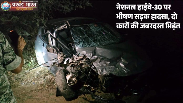 कांकेर (AkhandBharatHNKP.Com)। कांकेर जिले में गुरुवार देर रात नेशनल हाईवे-30 पर हुए भीषण सड़क हादसे में छह लोगों की मौके पर ही मौत हो गई, जबकि तीन अन्य गंभीर रूप से घायल हो गए। हादसा कोतवाली थाना क्षेत्र अंतर्गत नाथिया नवागांव के पास दो कारों की आमने-सामने टक्कर से हुआ।