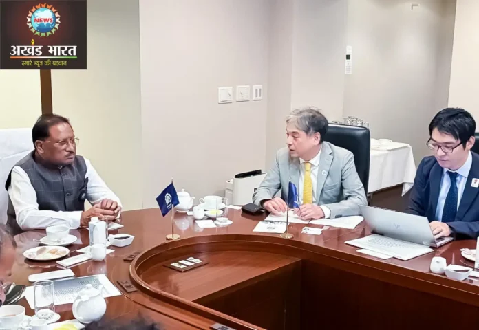 रायपुर (AkhandBharatHNKP.Com)। जापान प्रवास पर गए मुख्यमंत्री विष्णुदेव साय ने टोक्यो में एक्सटर्नल ट्रेड आर्गनाइजेशन के सीनियर अफसरों से मुलाकात की। बैठक में आईटी, टेक्सटाइल्स, एयरोस्पेस, ऑटोमोबाइल, इलेक्ट्रॉनिक्स एवं स्वच्छ ऊर्जा जैसे क्षेत्रों में छत्तीसगढ़ की अपार संभावनाओं को रेखांकित किया गया। जेट्रो के प्रतिनिधियों को प्रदेश की तेज़ी से प्रगति कर रही अर्थव्यवस्था में निवेश के नए अवसर तलाशने हेतु आमंत्रित किया।