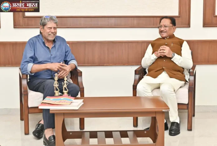 रायपुर (AkhandBharatHNKP.Com)। मुख्यमंत्री विष्णुदेव साय से रायपुर स्थित मुख्यमंत्री निवास कार्यालय में भारतीय क्रिकेट टीम के पूर्व कप्तान कपिल देव ने सौजन्य मुलाकात की। मुख्यमंत्री ने कपिल देव को बेल मेटल से बनी प्रतिकृति, पुण्यभूमि छत्तीसगढ़ कॉफी टेबल बुक भेंट कर उनका अभिनंदन किया।